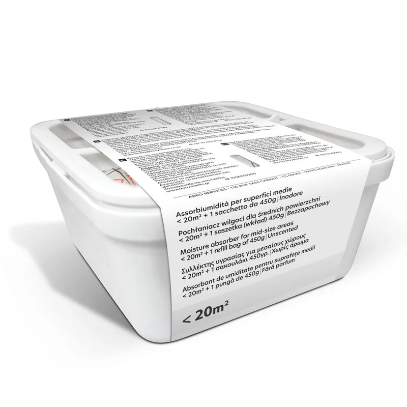 Absorbantul de umiditate, de 450 g, este ideal pentru a scapa de excesul de umiditate din aer si pentru a reduce efectele nocive ale nivelurilor de umiditate ridicata: condens, mucegai, miros de aer stagnant.