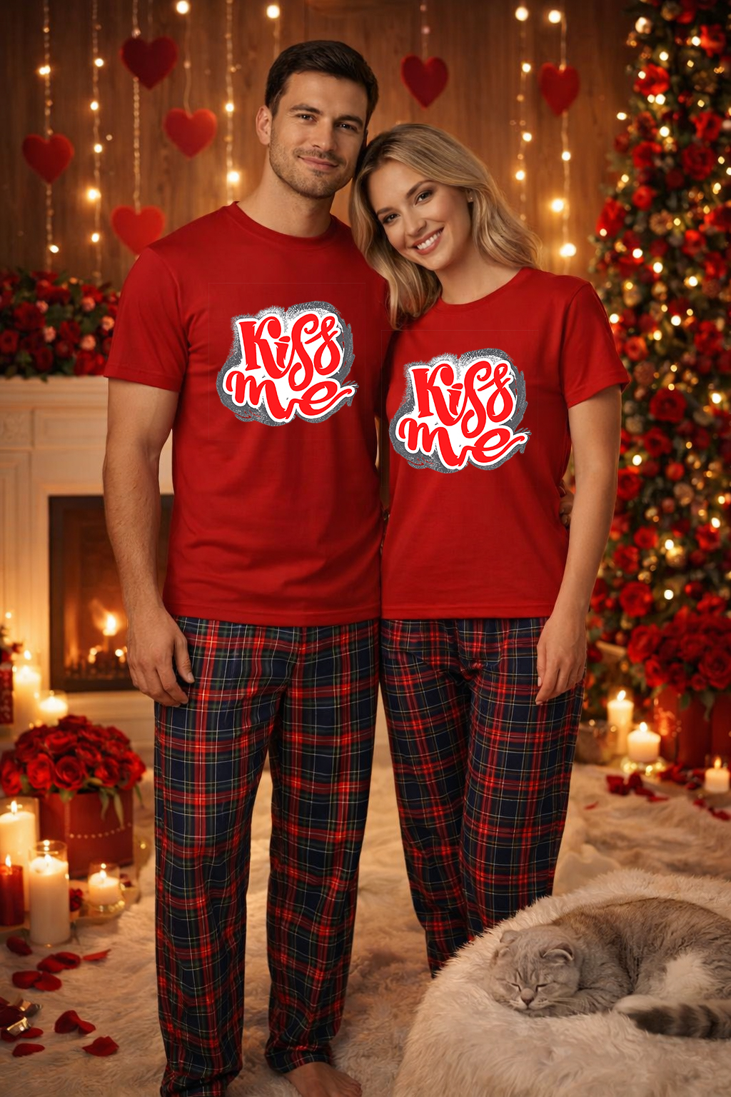 Setul de pijamale pentru cuplu este conceput pentru confort zilnic, relaxare si momente speciale petrecute impreuna. Acest set pijamale cuplu Valentine’s si Dragobete este format din tricouri unisex realizate din 100% bumbac si pantaloni de pijama fabricati din material confortabil, potrivit pentru purtare indelungata. Este o alegere practica pentru cuplurile care cauta pijamale cuplu bumbac, pijamale pentru casa, pijamale pentru somn sau pijamale cuplu cadou.