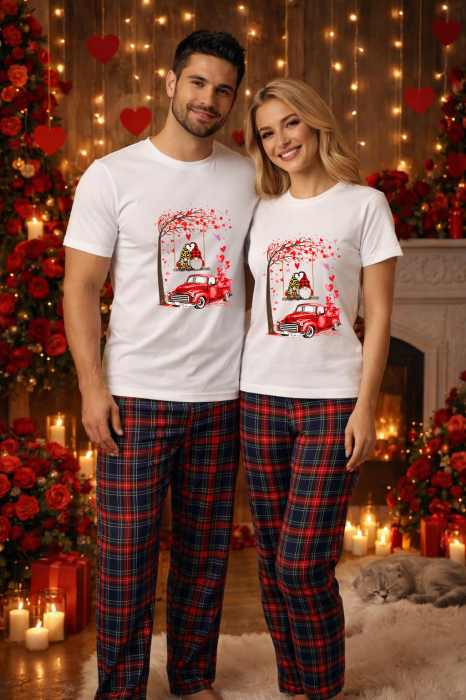 Set pijamale pentru cuplu – tricou si pantaloni pijamale, bumbac, Valentine's si Dragobete