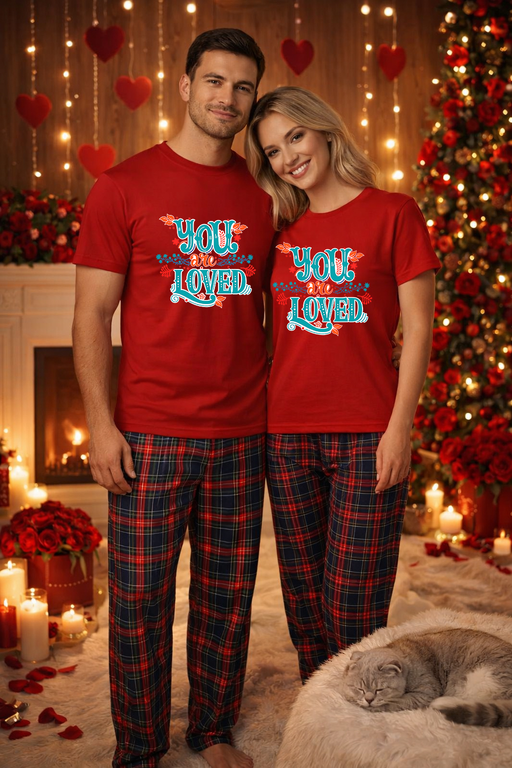 Setul de pijamale pentru cuplu este conceput pentru confort zilnic, relaxare si momente speciale petrecute impreuna. Acest set pijamale cuplu Valentine’s si Dragobete este format din tricouri unisex realizate din 100% bumbac si pantaloni de pijama fabricati din material confortabil, potrivit pentru purtare indelungata. Este o alegere practica pentru cuplurile care cauta pijamale cuplu bumbac, pijamale pentru casa, pijamale pentru somn sau pijamale cuplu cadou.